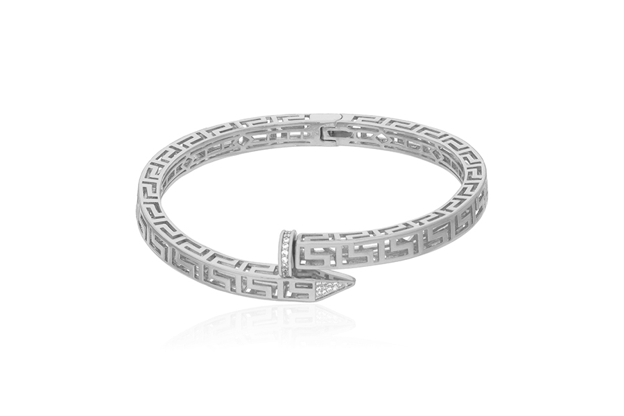 BRACELETE BANHADO EM RÓDIO BRANCO, PREGO, LINHA OUSE