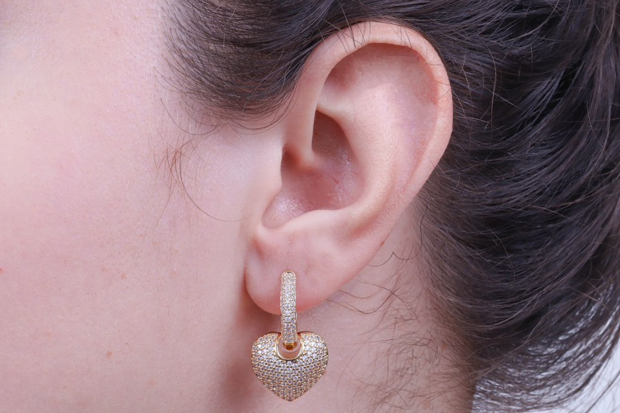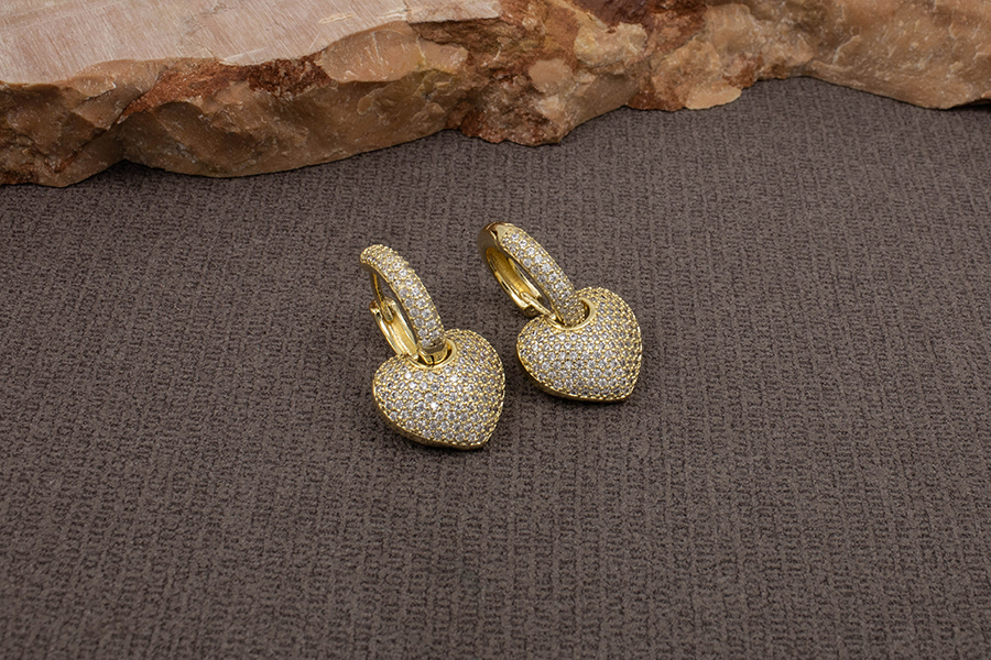 BRINCO BANHADO EM OURO, 15mm ALTURA COM 21 ZIRCÔNIAS