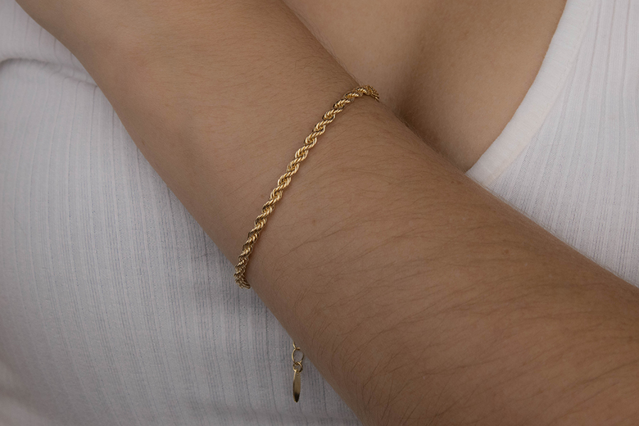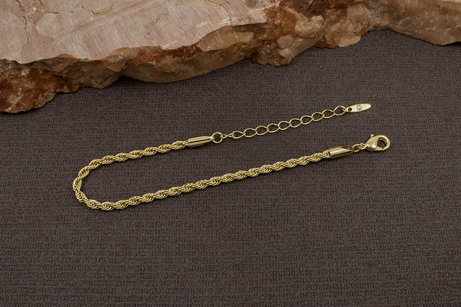 PULSEIRA BANHADA EM OURO, CORRENTE ELO CORDA 3mm ESPESSURA, 17cm COMPRIMENTO, EXTENSOR 5cm COMPRIMENTO E PESO 5,30g