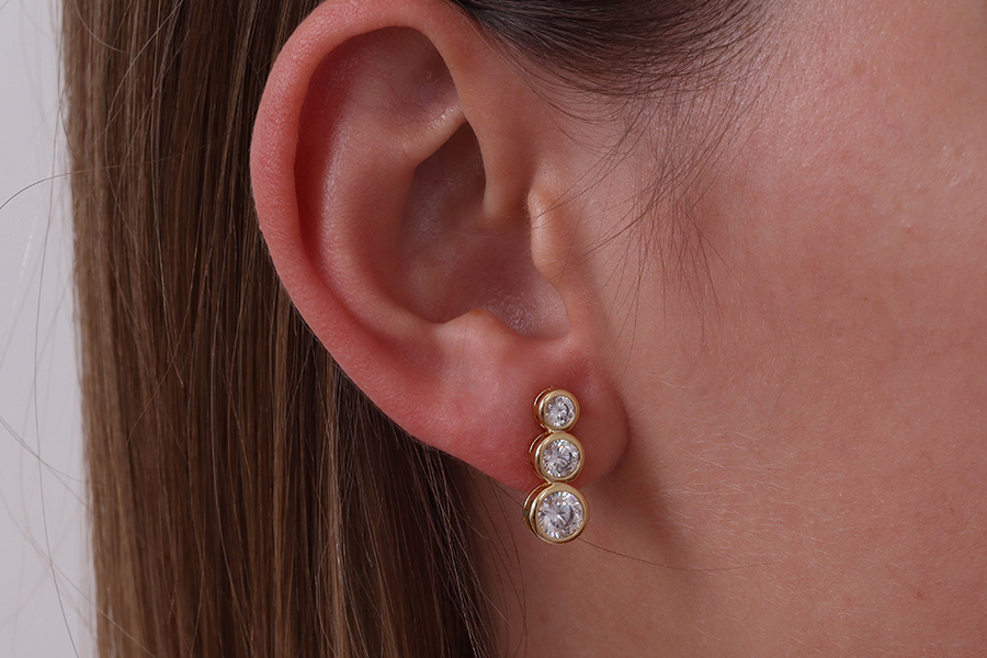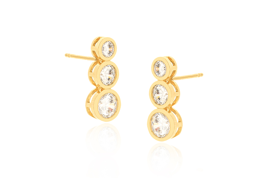 BRINCO BANHADO EM OURO, 15mm ALTURA COM 21 ZIRCÔNIAS