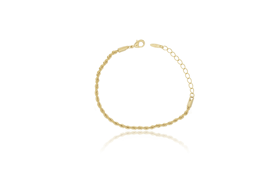 PULSEIRA BANHADA EM OURO, CORRENTE ELO CORDA 3mm ESPESSURA, 17cm COMPRIMENTO, EXTENSOR 5cm COMPRIMENTO E PESO 5,30g