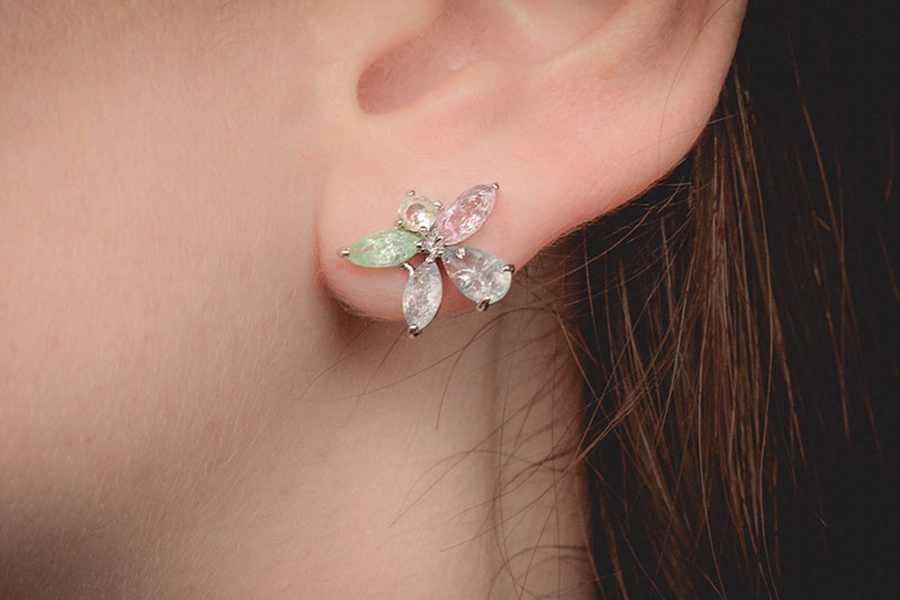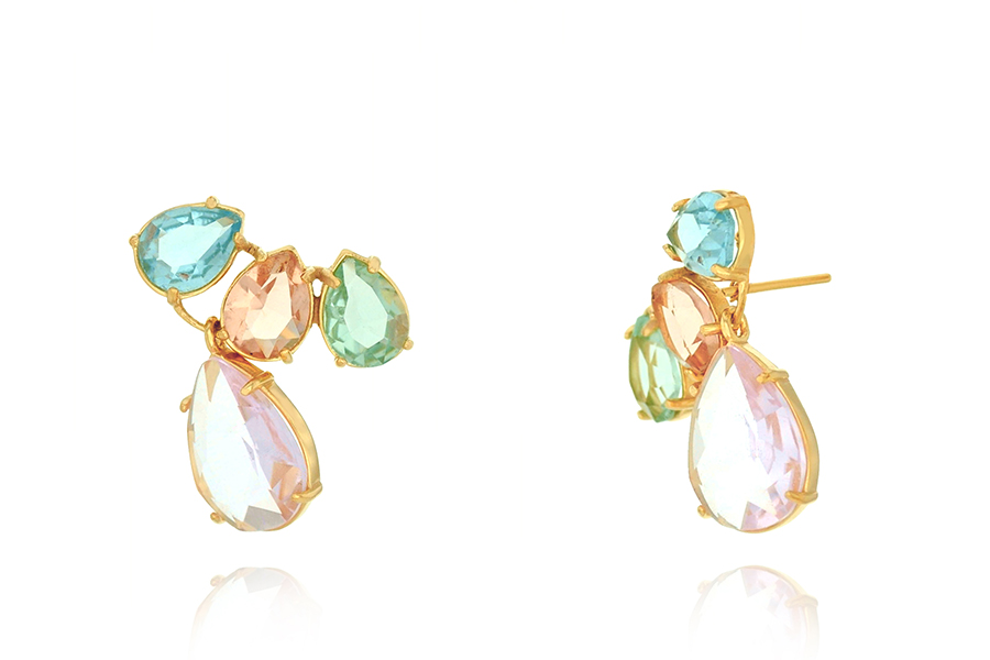 BRINCO BANHADO EM OURO, CRISTAL GOTA 17X11mm E 11X9mm, COLEÇÃO PINK