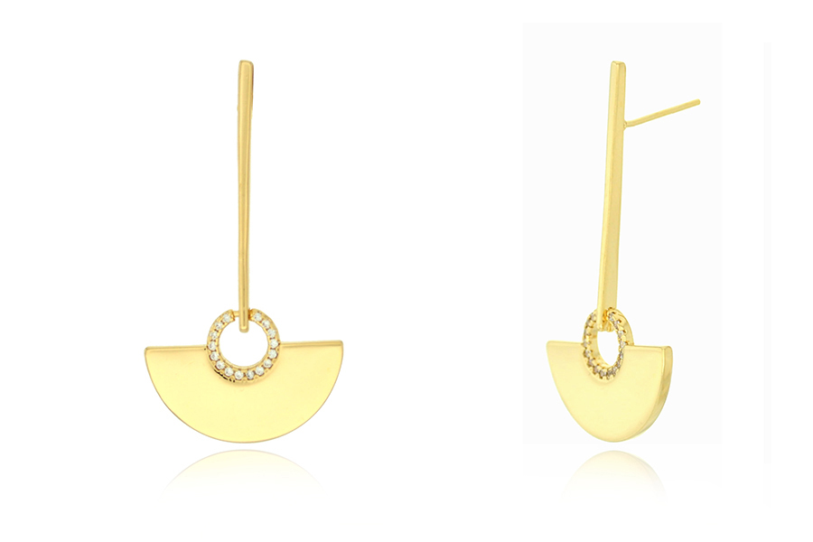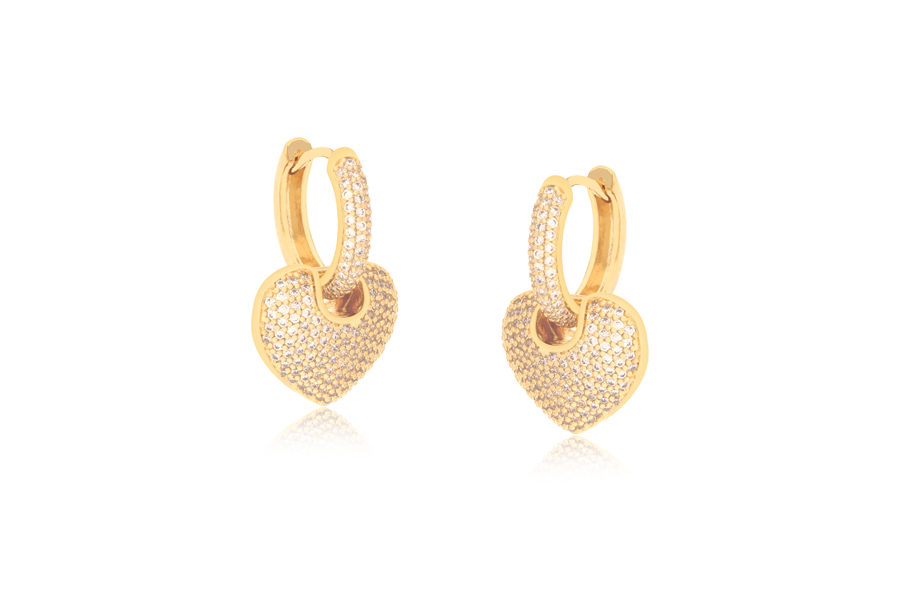 BRINCO BANHADO EM OURO, 15mm ALTURA COM 21 ZIRCÔNIAS