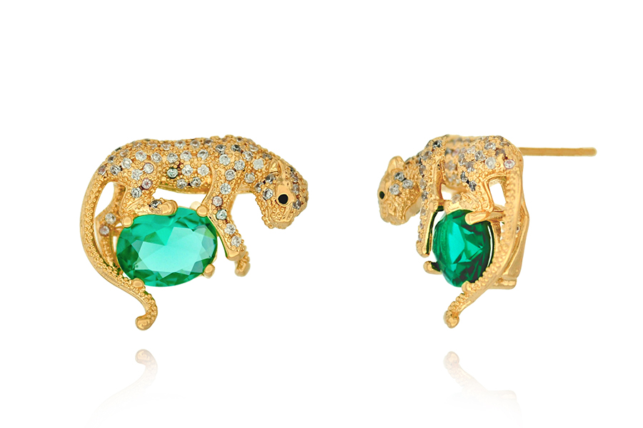 BRINCO BANHADO EM OURO, PANTERA COM ZIRCÔNIA OVAL VERDE